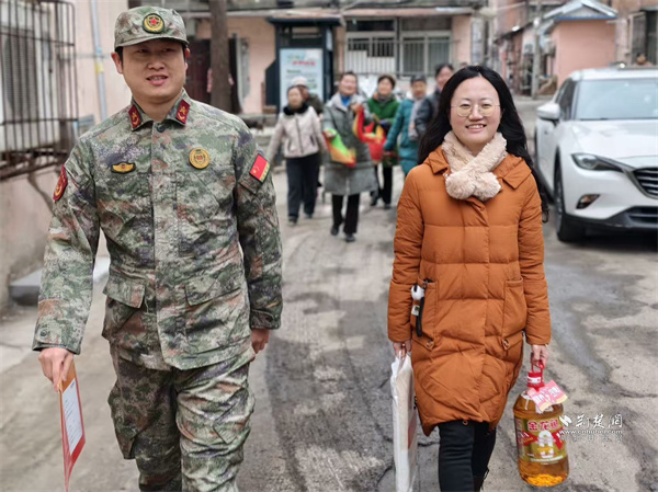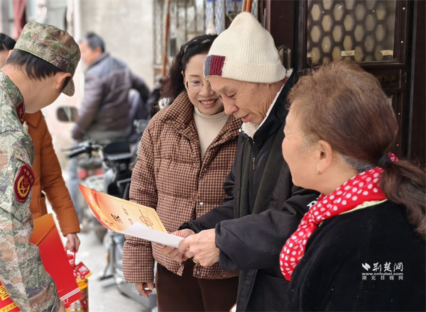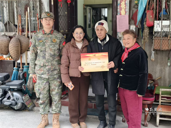 荊楚網(wǎng)(湖北日報網(wǎng))訊(通訊員 蘇楚雄 鐘霓 游薇 侯本瑞)1月29日,武昌區(qū)楊園街道電力新村社區(qū)鑼鼓聲響、熱鬧非凡。街道人武部、退役軍人服務(wù)站和社區(qū)工作人員組成“報喜小隊”為現(xiàn)役軍人家屬送去子女在部隊榮獲的“四有”優(yōu)秀學(xué)員榮譽(yù)證書,并送上慰問物資,傳遞對軍屬的崇高敬意和誠摯關(guān)懷。
