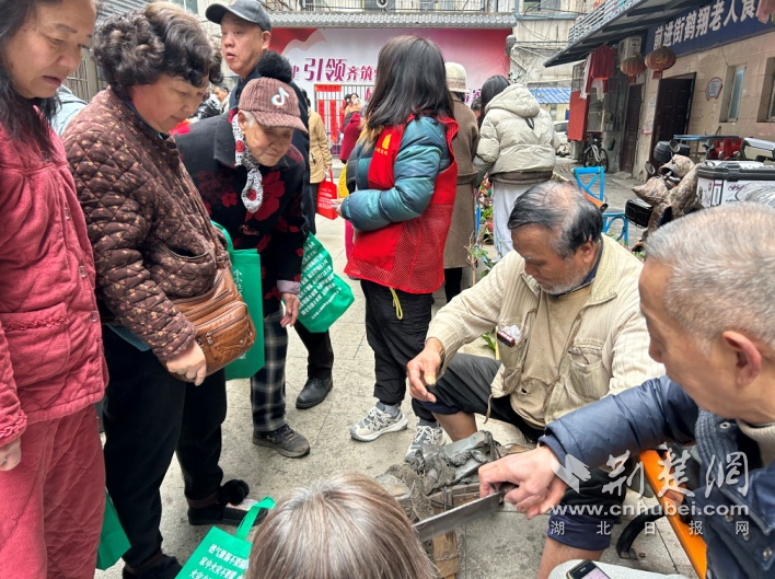 便民服務(wù)區(qū)人氣最旺。武商集團(tuán)世貿(mào)廣場(chǎng)帶來(lái)的專業(yè)皮具清理服務(wù),讓不少“老物件”煥然一新;理發(fā)、磨刀、洗鞋、洗鍋等攤位前,志愿者們動(dòng)作嫻熟、服務(wù)周到,幫居民解決生活中的“關(guān)鍵小事”。