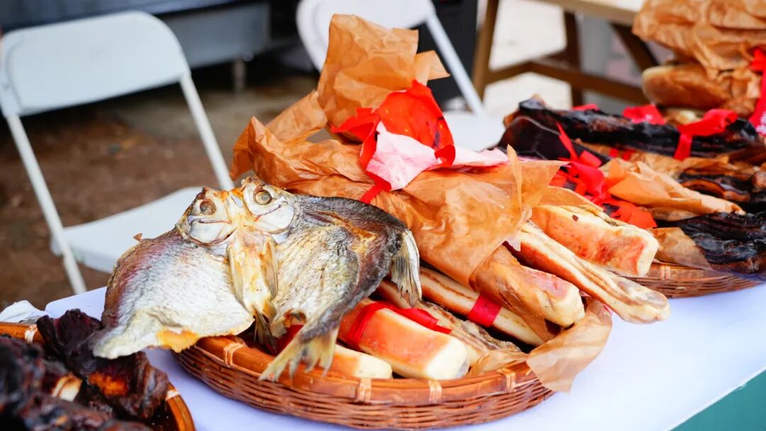 作為活動(dòng)的重要組成部分,特色年貨市集“滿倉吉市”匯集了滿滿的煙火氣與本土特色。黃陂三鮮、鴨子煲、清湯鵝等地道美食香氣四溢,喚醒味蕾記憶。本地農(nóng)產(chǎn)品等特色攤位也一字排開,好不熱鬧。朝陽村的豆絲攤位前早早排起了長隊(duì)。朝陽村黨支部書記、村委會(huì)主任熊偉介紹:“今天我們準(zhǔn)備了200斤米漿,現(xiàn)場制作近千張豆絲免費(fèi)供游客品嘗,既讓大家嘗到家鄉(xiāng)味,也帶動(dòng)了村里油、土雞、糯米等農(nóng)副產(chǎn)品的銷售?!?/p>