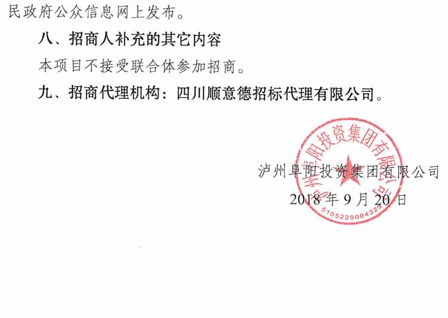 招商公告:瀘州阜陽(yáng)投資集團(tuán)有限公司耕地占補(bǔ)平衡項(xiàng)目招商公告