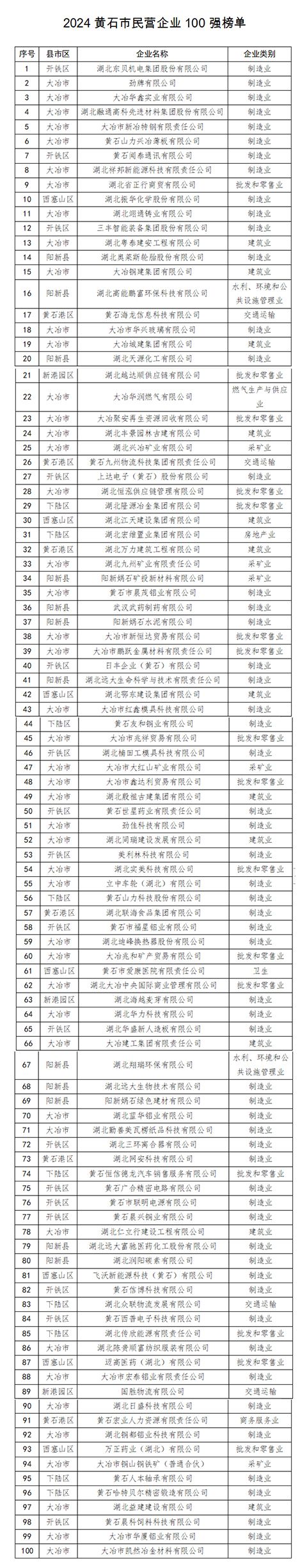 據(jù)悉,該榜單按照“湖北省民營(yíng)企業(yè)100強(qiáng)”系列榜單排序方法,以2023年度企業(yè)營(yíng)收總額(黃石地區(qū))作為主要指標(biāo),對(duì)自愿參加申報(bào)的民營(yíng)企業(yè)進(jìn)行排序,并征求相關(guān)部門(mén)意見(jiàn)建議而形成。