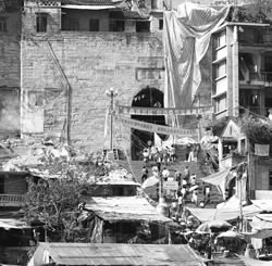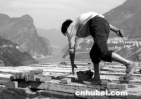 (圖1)西陵峽兵書寶劍峽口,村民正忙著蓋新樓房。 (圖2)一名兒童在已拆得面目全非的房屋前玩耍。 (圖3)奉節(jié)老城開濟(jì)門城墻如今只剩殘?jiān)珨啾凇?BR>(圖4)祖孫倆坐在云陽老縣城二期水位標(biāo)牌前。 (圖5)奉節(jié)縣居民在新縣城百米速寫畫墻上覓舊城蹤影。 (圖6)萬州老城最繁華的勝利街只留下了指示路牌。 ______________________________________________________
