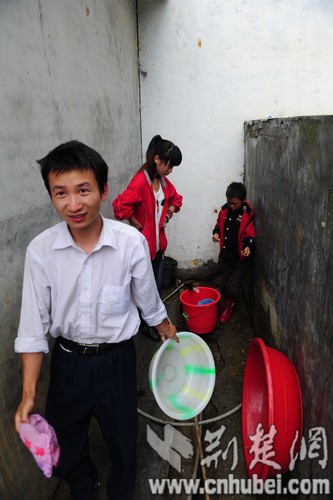 水,過(guò)去一直是困擾支教生的大問(wèn)題。在大石,吃水全靠山上滲下的雨水,一到干旱,就面臨著斷水的威脅,尤其是冬天夜里上凍,支教生常常是晚上批完作業(yè)、備完課,然后去挑水。