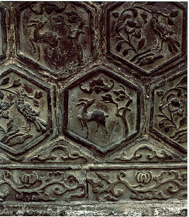 磚 雕 萬壽塔座落在荊州市荊江大堤內側古觀音磯上,是16世紀中葉,明藩第七代遼王朱憲節(jié)遵嫡母毛太妃之命為嘉靖帝祈壽而建。塔身內外除玉雕佛龕坐佛外,還有兩千多塊磚雕。藝人以浮雕和線刻手法塑造了神態(tài)各異的佛像、動物、花鳥圖案。磚雕兩側,還以漢、滿、蒙、藏、回五種文字刻有捐資者姓名、捐資數目。